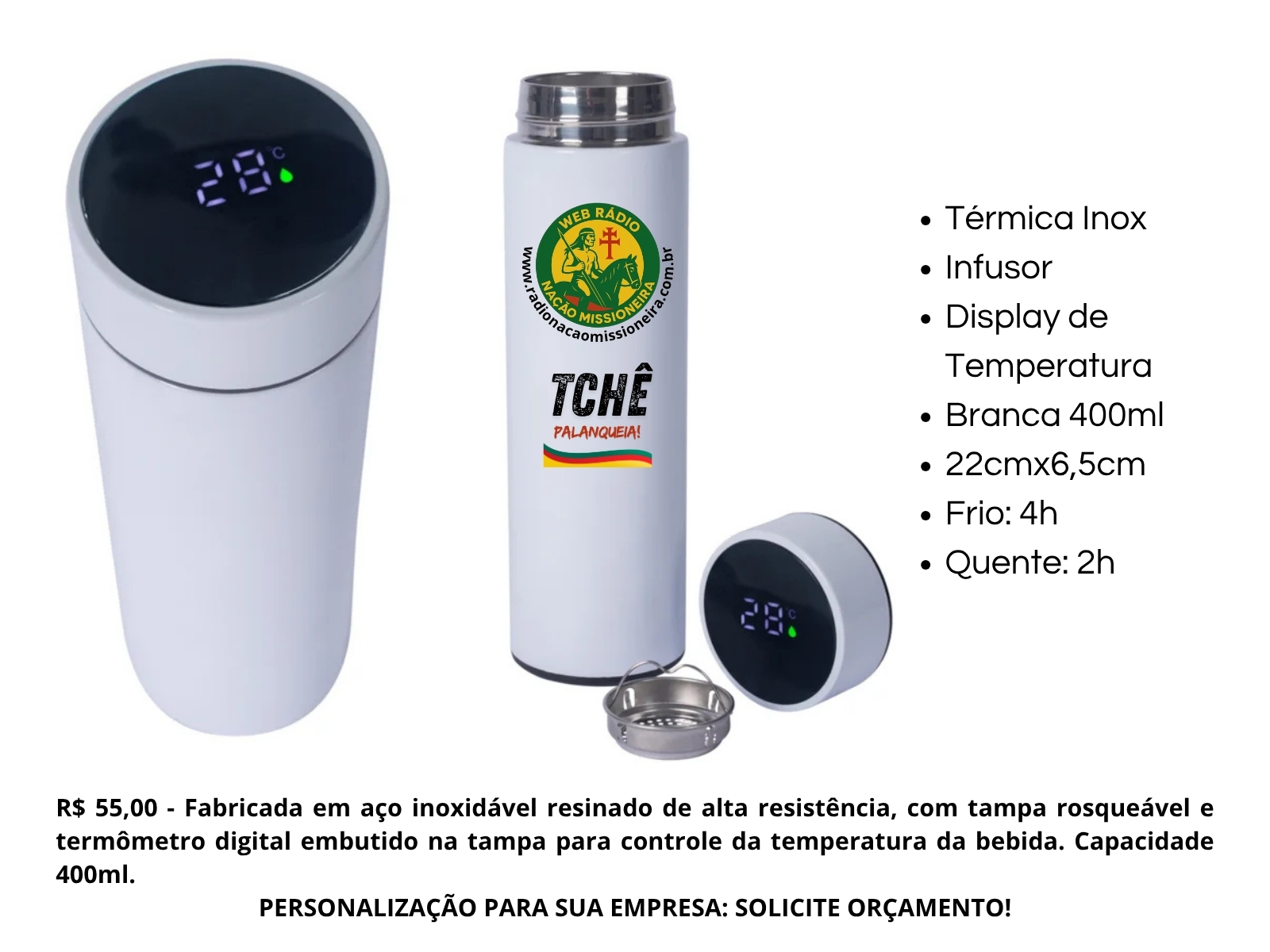 GARAFA TÉRMICA 400 ml Modelo Único por R$ 55,00 a unidade |